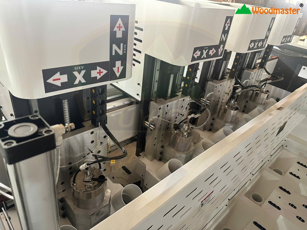 - Máy được thiết kế với 4 đầu dao và 2 bàn kép