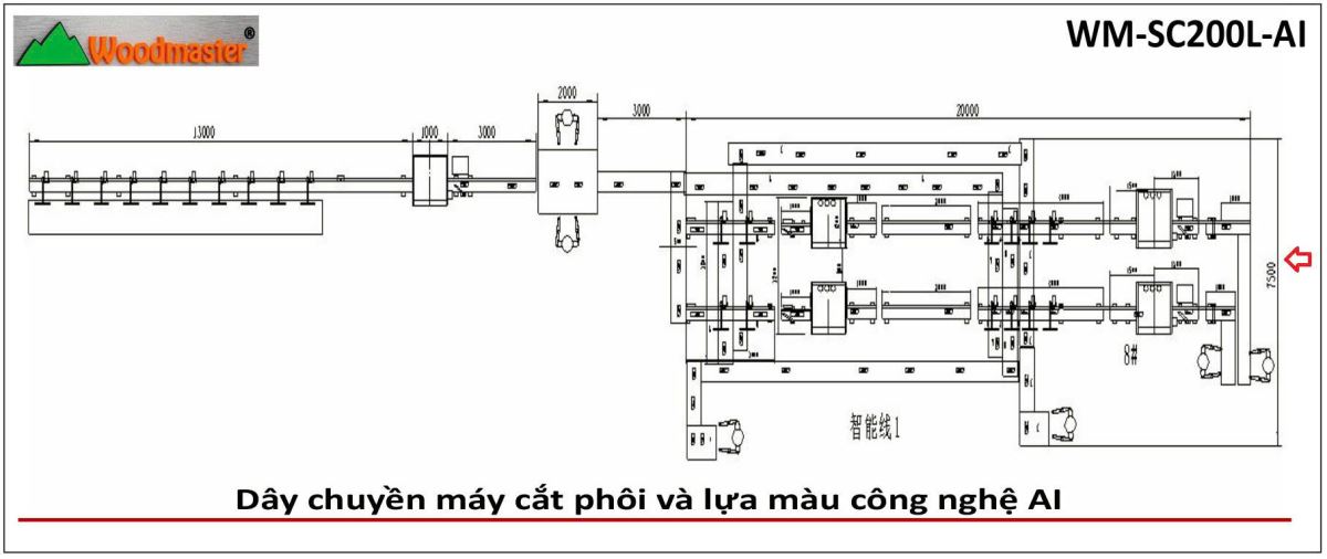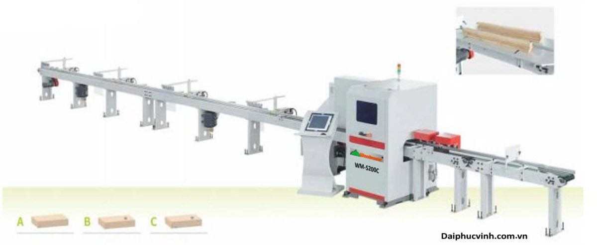 Dây chuyền scan cắt khuyết tật và phân loại gỗ công nghệ AI WM-SC200L-AI