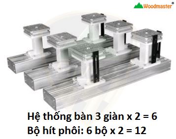 - Hệ thống giữ phôi: 12 cục hít (6x2)
